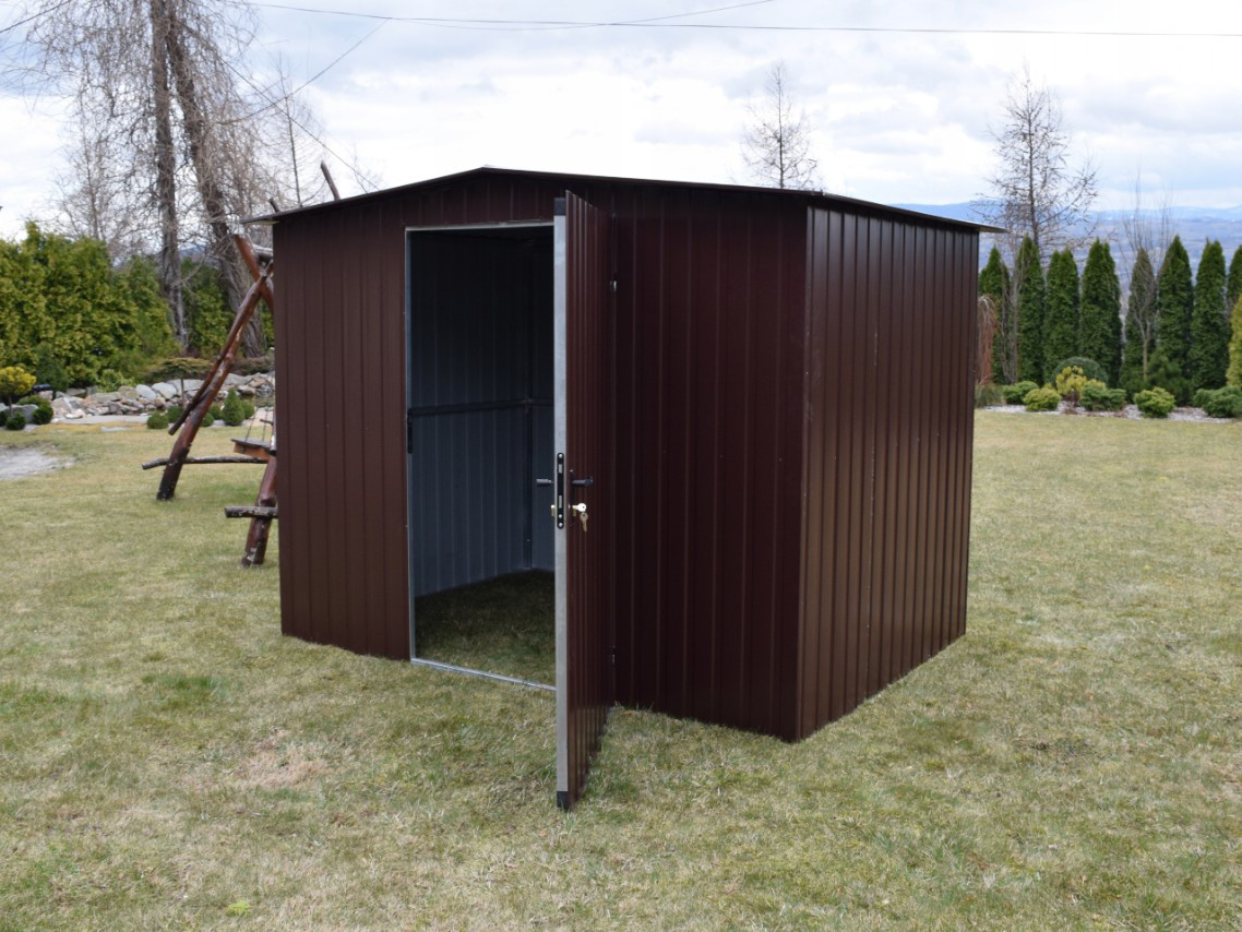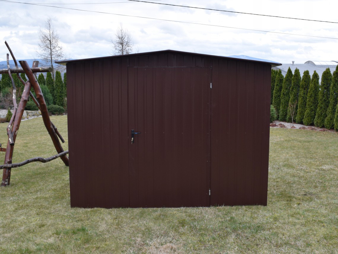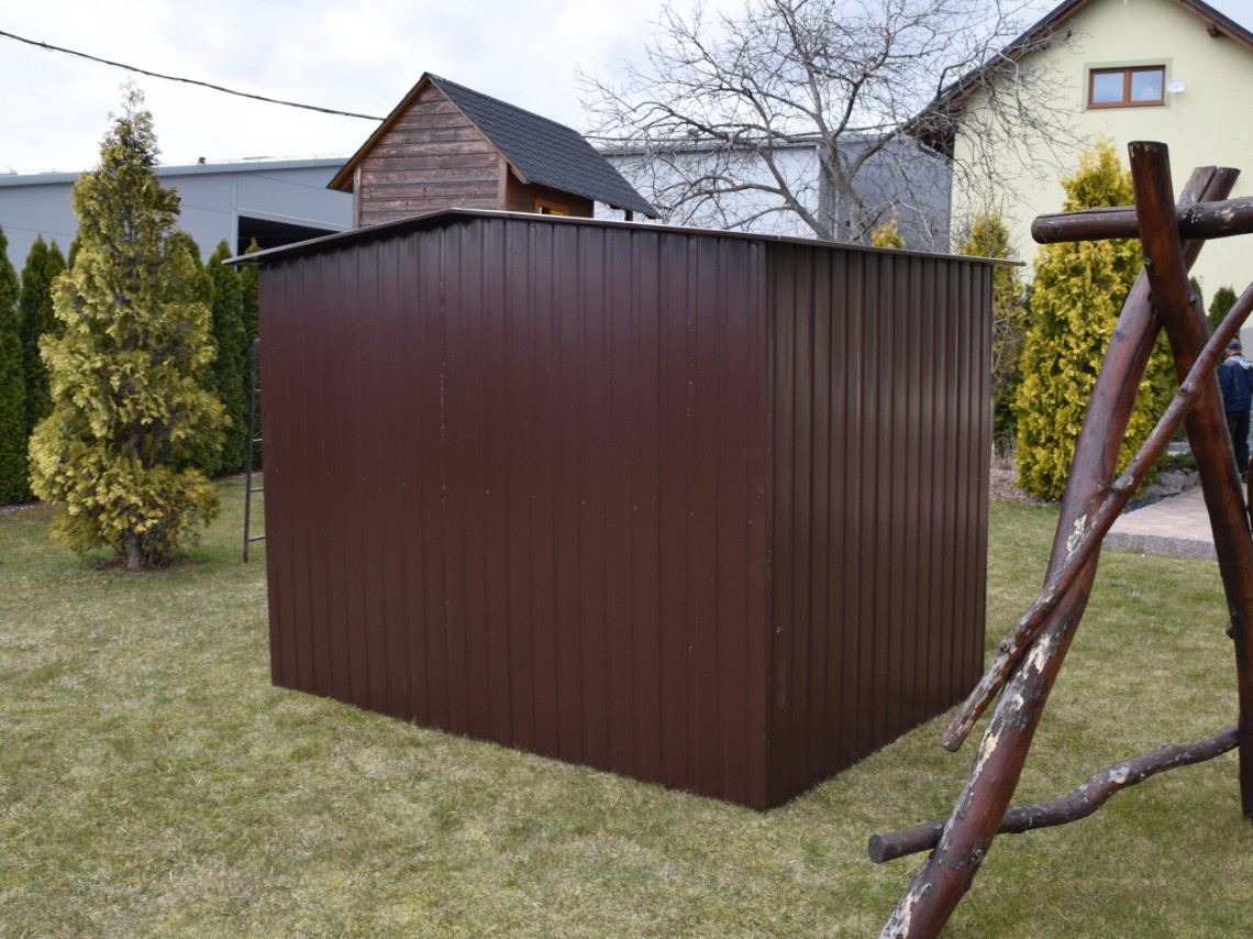 Zahradní domek, domek na nářadí může být vyroben z barevného plechu v barvě RAL lesklá z naší aktuální nabídky.