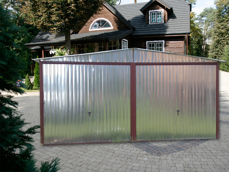 Standardní plechová garáž o šířce 3m (2,97m) x 5m (4,97m) se sedlovou střechou a dvoukřídlými vraty. Konstrukce garáže je vyrobena z úhelníků žárově zinkovaných nebo z uzavřených čtvercových profilů 30x30 mm žárově zinkovaných. Na konstrukci je pomocí hliníkových nýtů uchycený trapézový pozinkovaný plech. Hotové díly jsou k sobě spojeny pomocí šroubů tvoříc tak kompaktní a odolnou konstrukci. Vhodné jako garáž pro auto, motorku, kola, zahradní techniku. Ideální jako stavební buňka, nebo zahradní domek, sklad. Materiály používané pro výrobu jsou vybrány racionálně, což zajišťuje odolnost, funkčnost a bezpečnost výrobku.