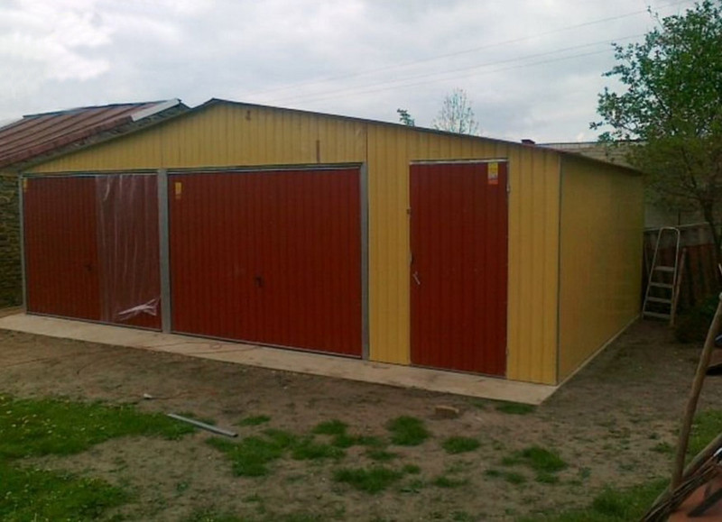 Plechová garáž 3x5 m z plechu v barvě RAL dle výběru z naší nabídky barev, s konstrukcí z úhelníků žárově zinkovanýchů, nebo se zesílenou konstrukcí z uzavřených čtvercových profilů 30x30 mm žárově zinkovaných.