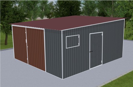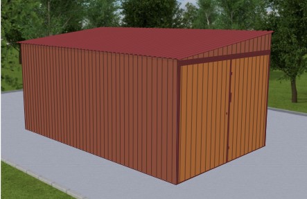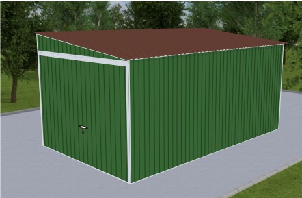 Plechová garáž 3x5 m z plechu v barvě RAL dle výběru z naší nabídky barev, s konstrukcí z úhelníků žárově zinkovanýchů, nebo se zesílenou konstrukcí z uzavřených čtvercových profilů 30x30 mm žárově zinkovaných.