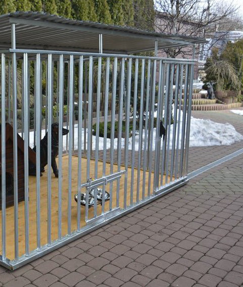 Kotec z černě lakovaných uzavřených profilů, jeklů, svařovaný - TYTUS, doporučený pro velké psy.