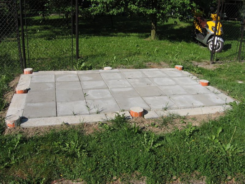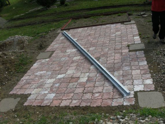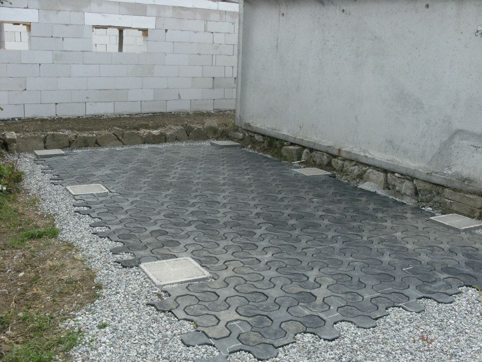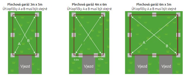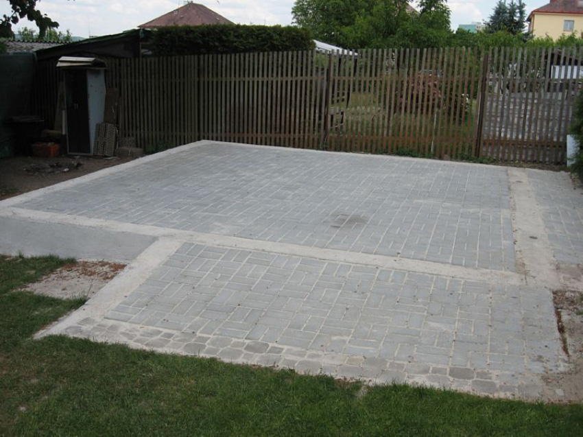Je možné rovněž rozestavit v rovině 6 kusů betonových prvků ( v případě jednogaráže ) typu: betonová chodníková dlažba, cihly, zámková dlažba. V případě, že je garáž větší, musí se počet betonových prvků početně zvyšovat s rozměrem garáže.